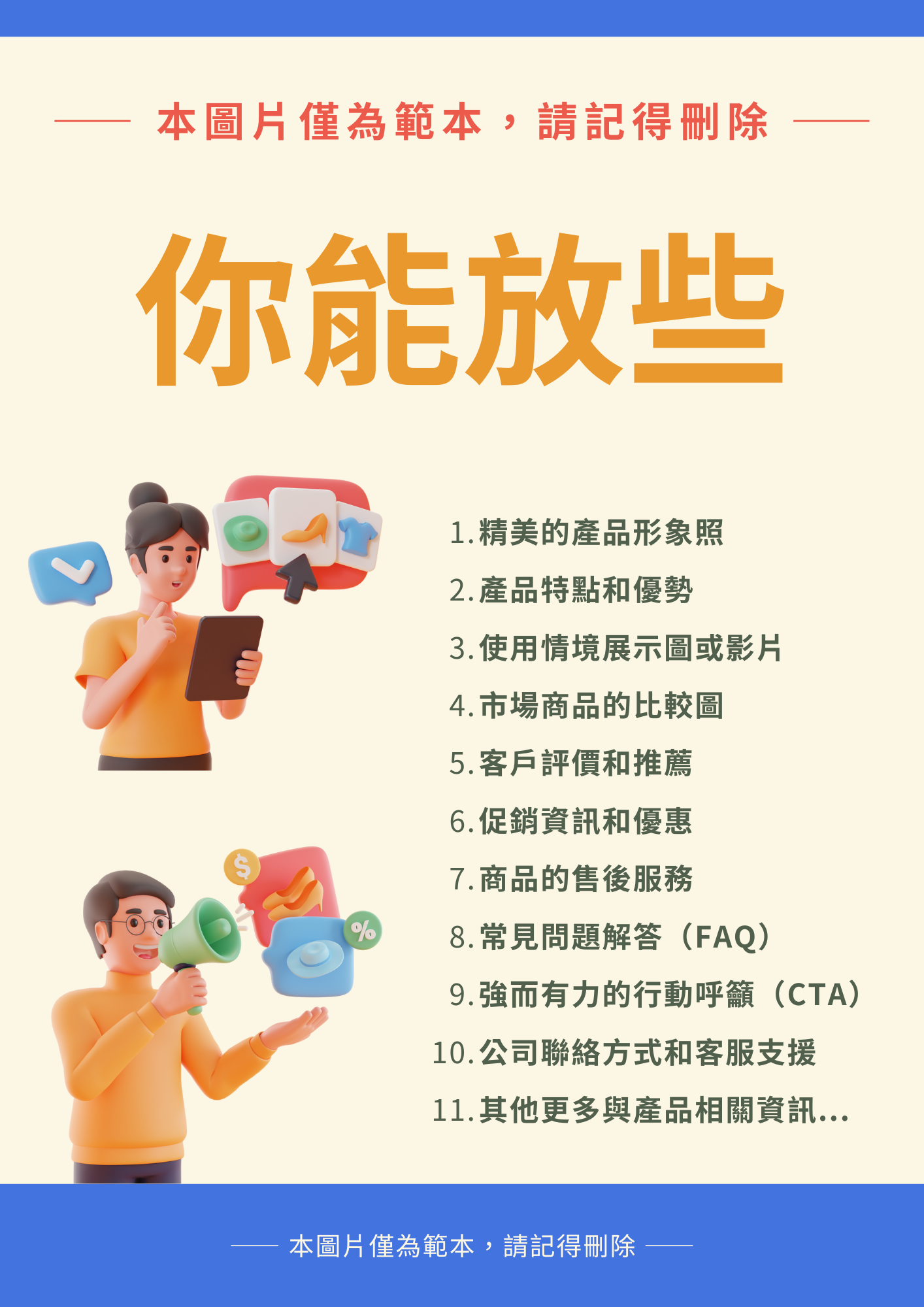 請記得將以下這些內容刪掉換上專屬於你的產品資訊